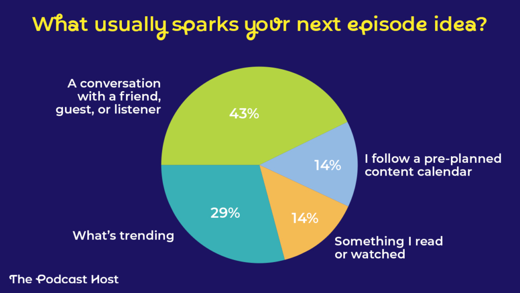 29% said they take inspiration from whatever’s trending in their podcast niche, while 14% said they usually pick up ideas from something they watched or read.