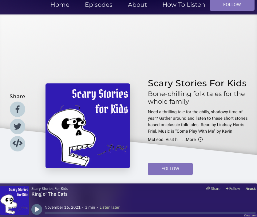 Acast also has a customizable embedded audio player. This includes buttons so users can follow or share the podcast.